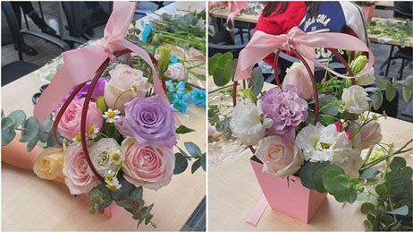 经过一个多小时的创作实践,一盆盆错落有致、生机盎然、创意十足的插花作品展现在大家眼前,令人赏心悦目。