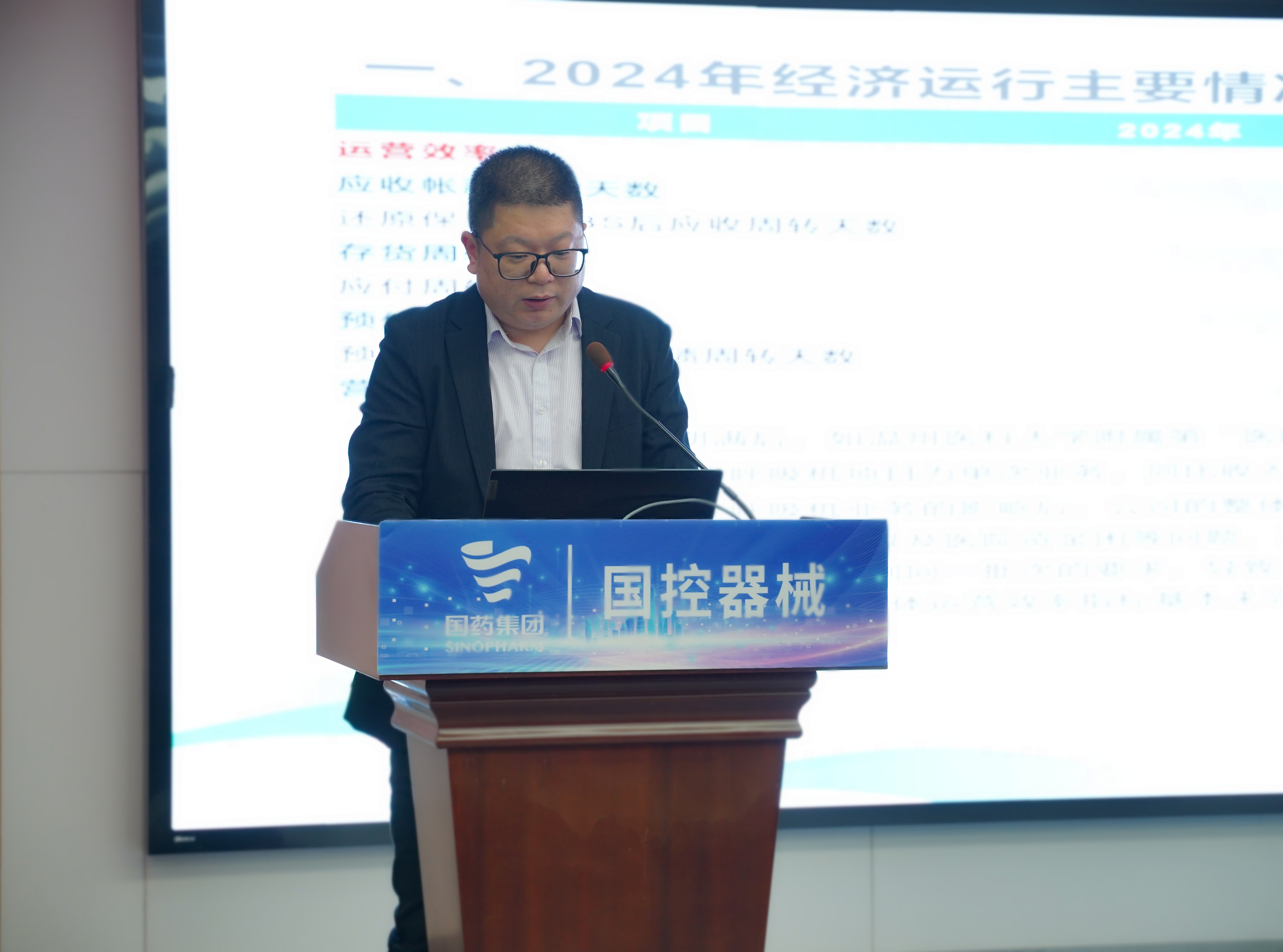 财务总监彭松同志作财务及运营分析报告,回顾了器械整体及各法人主体2024年度预算执行情况,以及应收账款管控、优化融资结构、提质增效等重点工作完成情况,并从“一利六率指标、规范贸易管理、加强内控体系建设、加强应收账款管理、推进费控一体化”等五个方面进行了工作部署。
