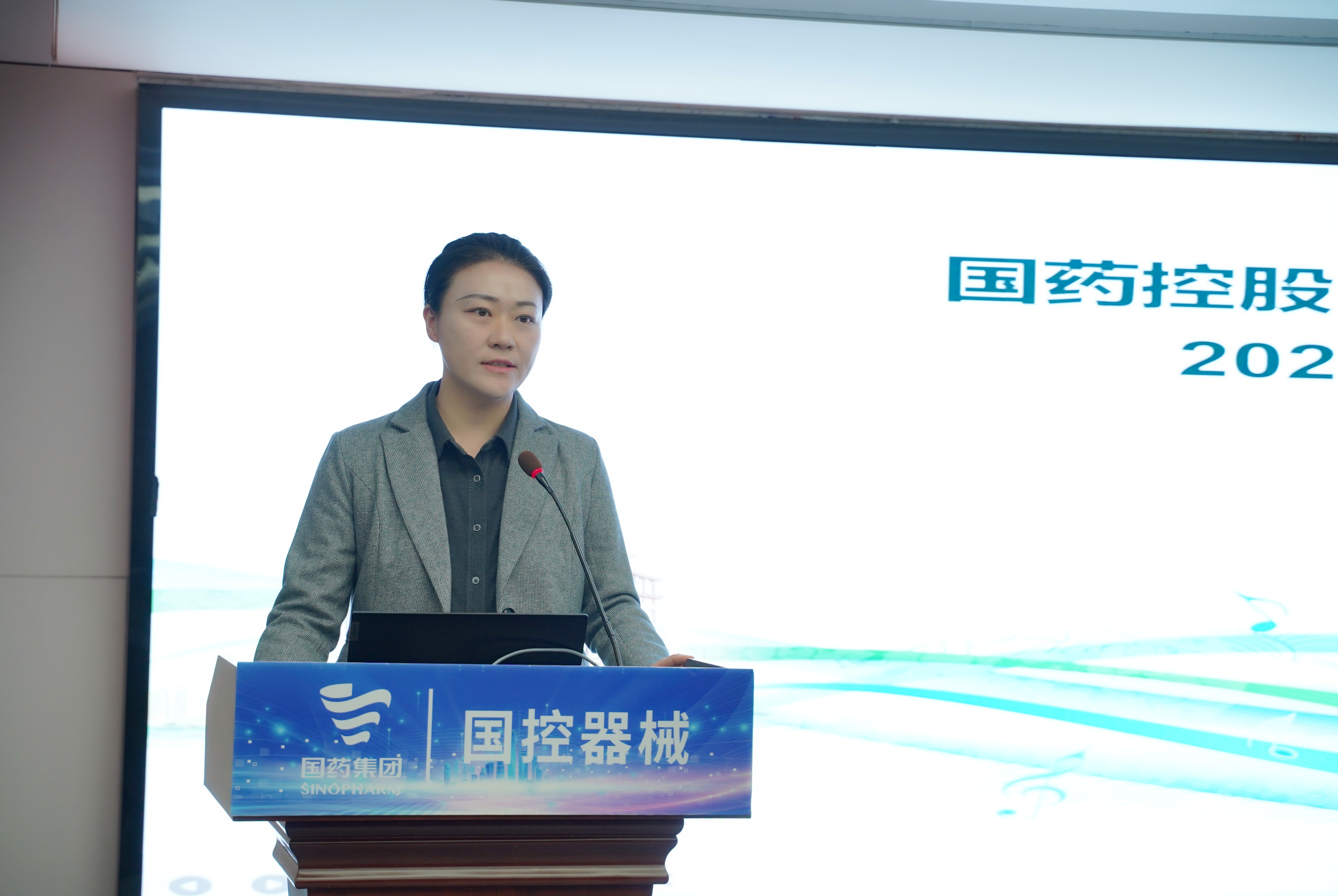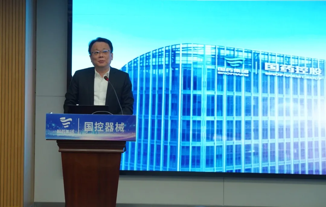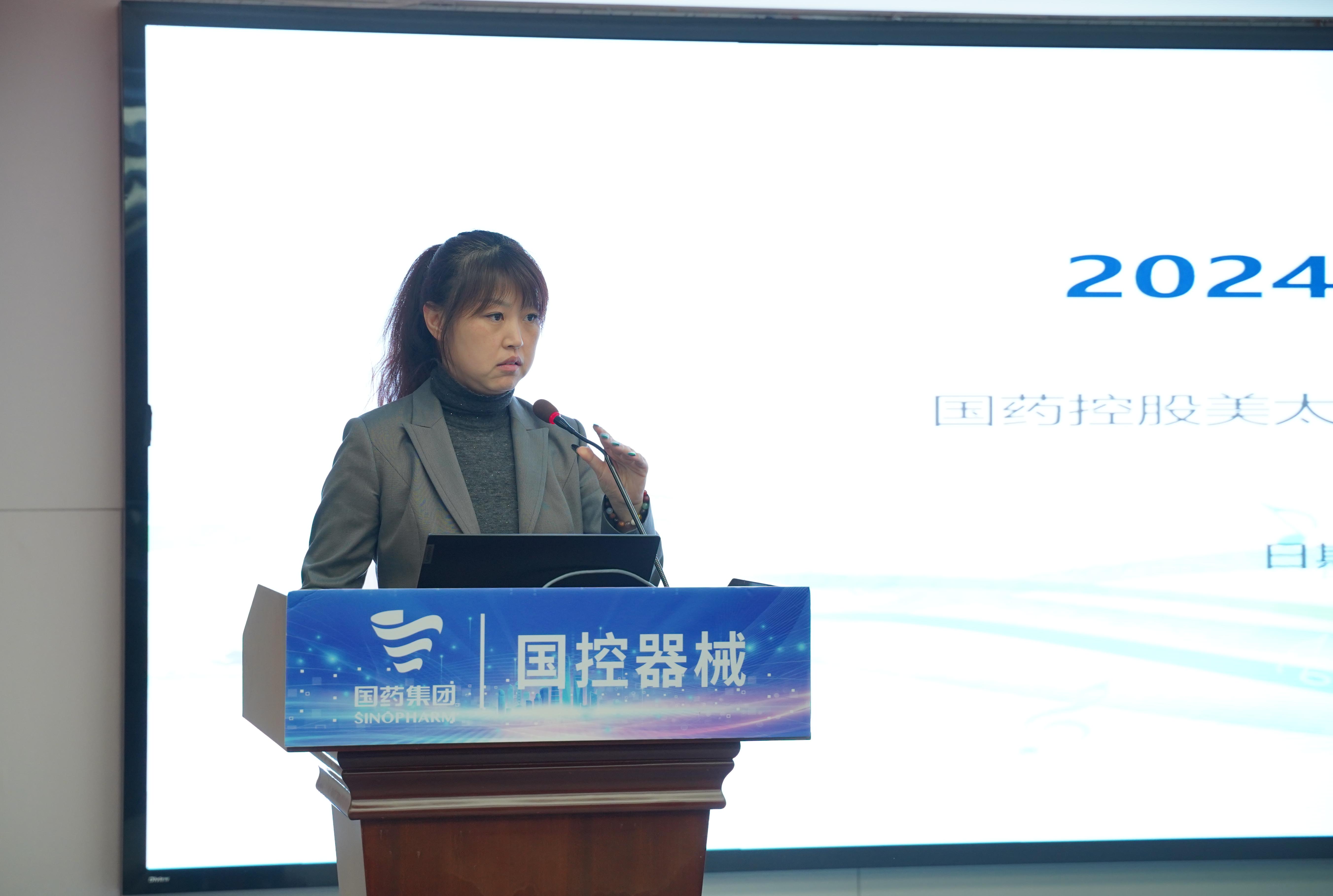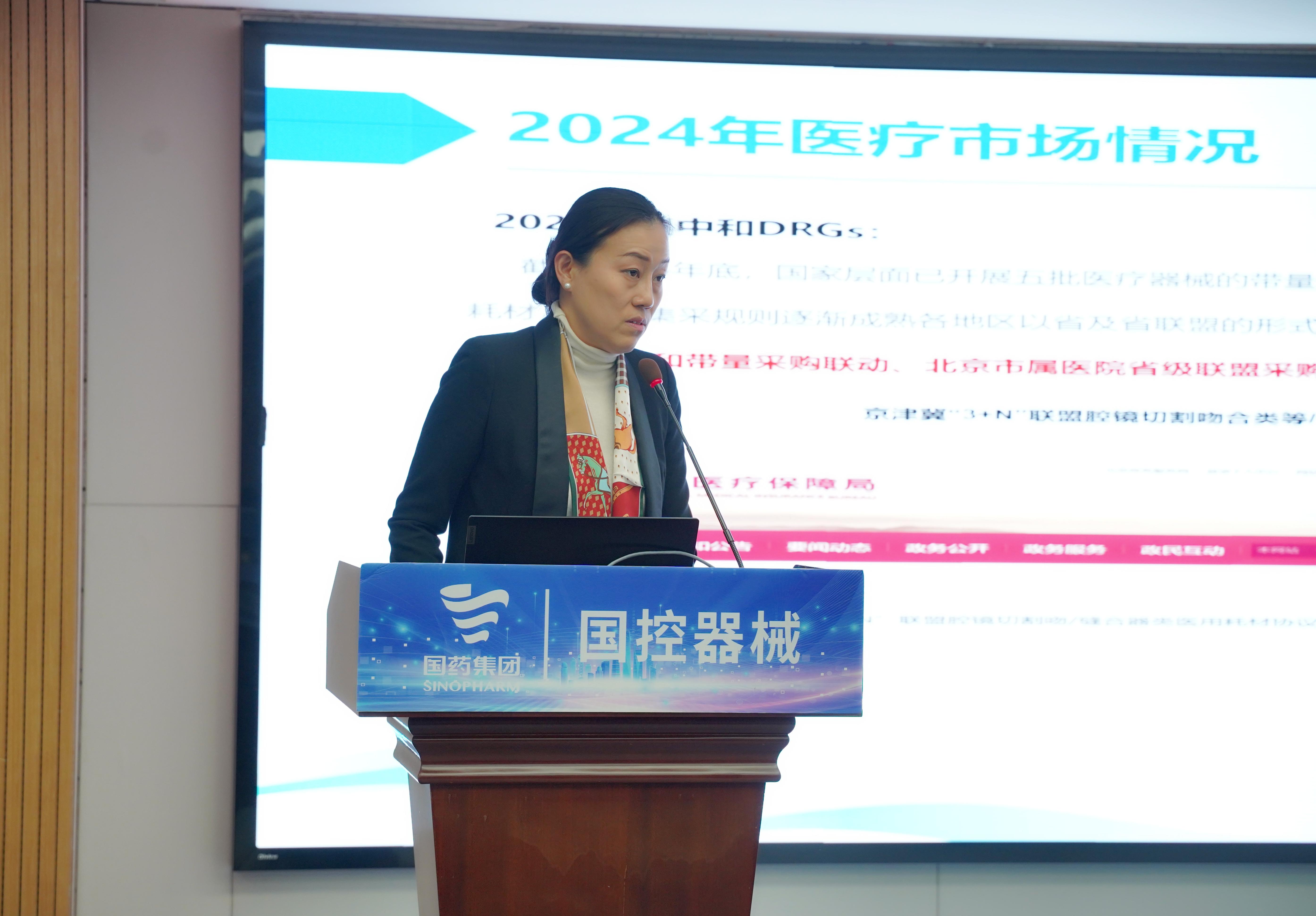 国控器械董事长、党总支书记王怡然同志传达国药集团、国药控股工作会精神并作题为《蓄新力 促转型 控风险 攀新高》的主旨报告。