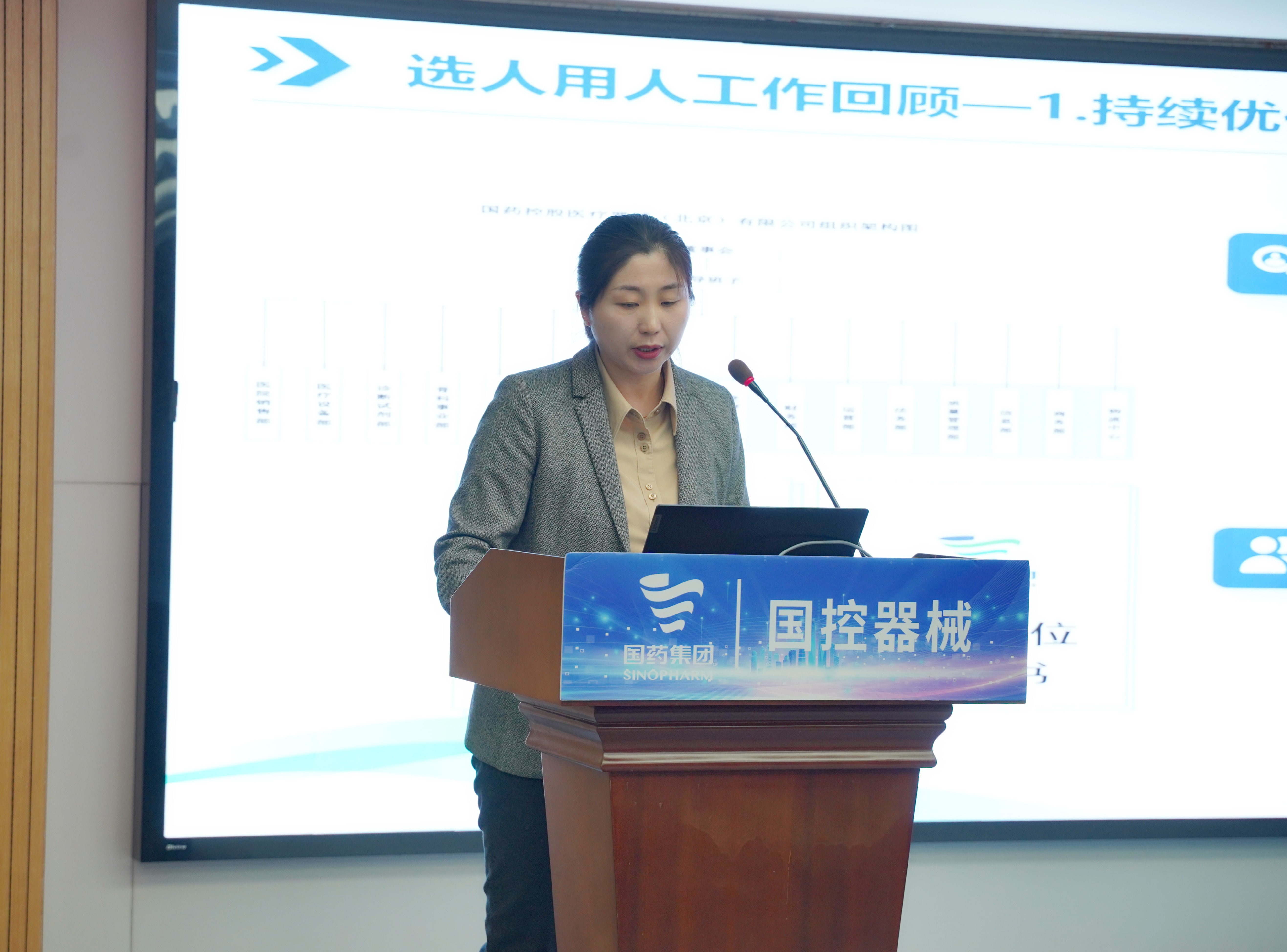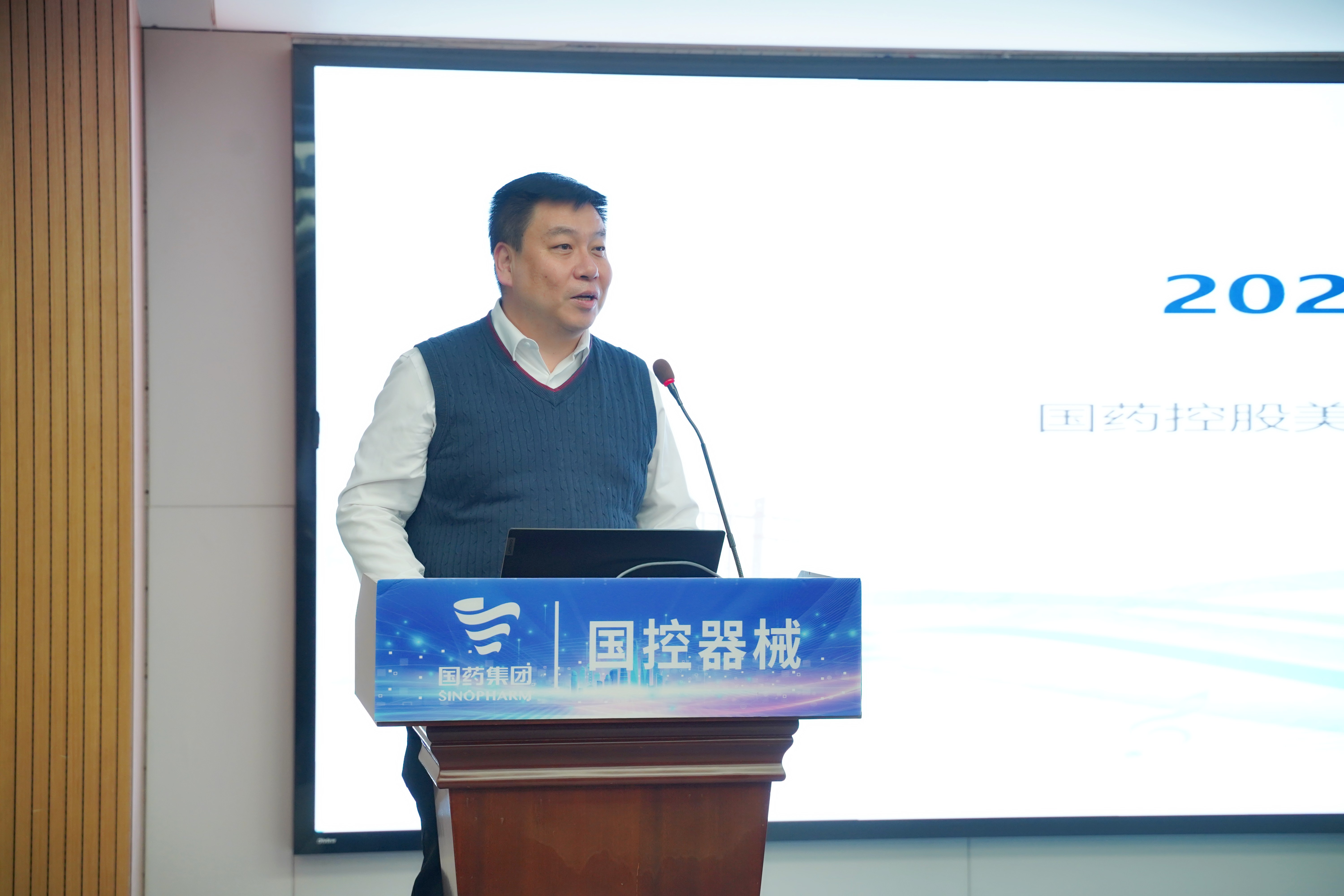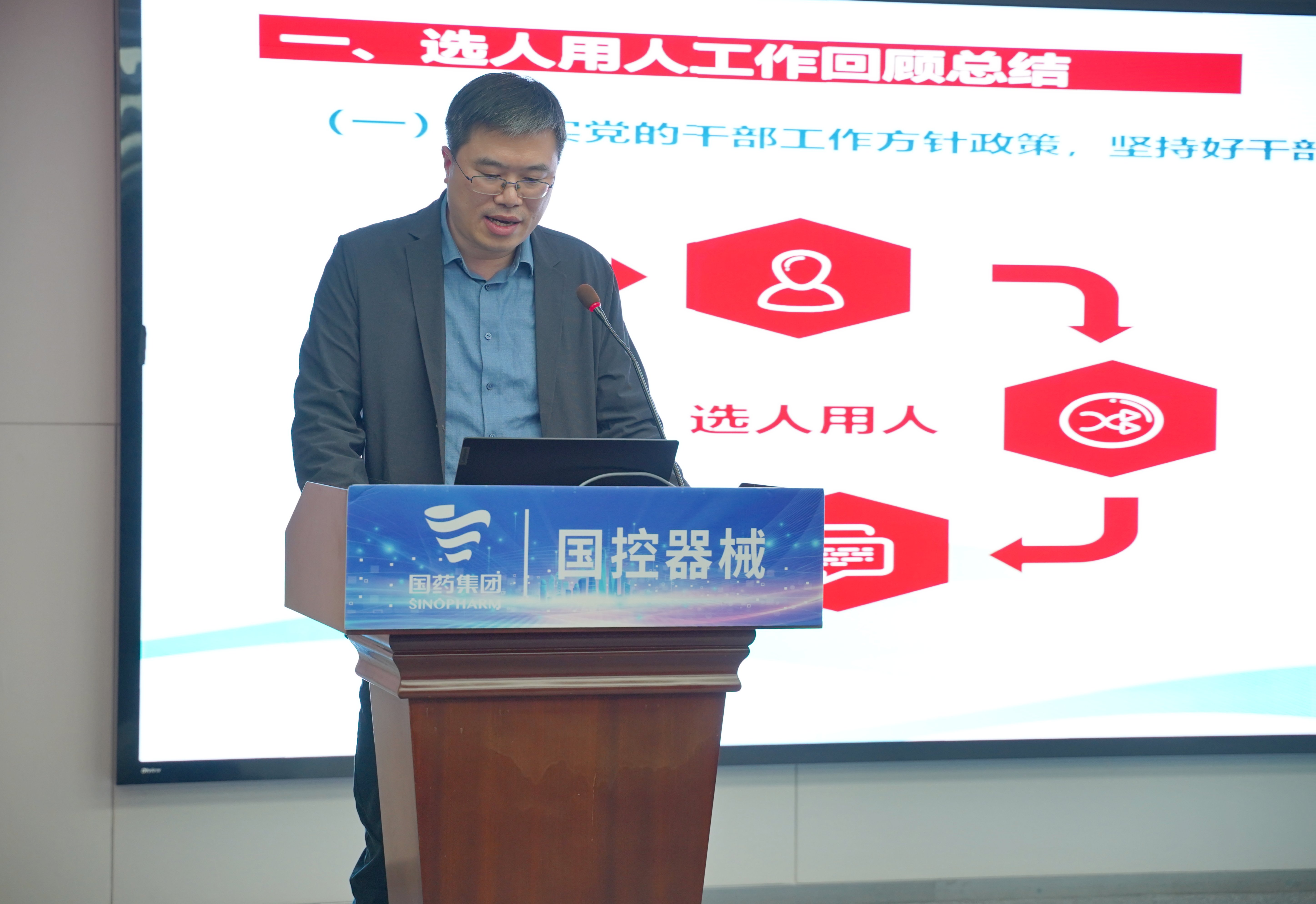 国控器械董事长、党总支书记王怡然同志传达国药集团、国药控股工作会精神并作题为《蓄新力 促转型 控风险 攀新高》的主旨报告。