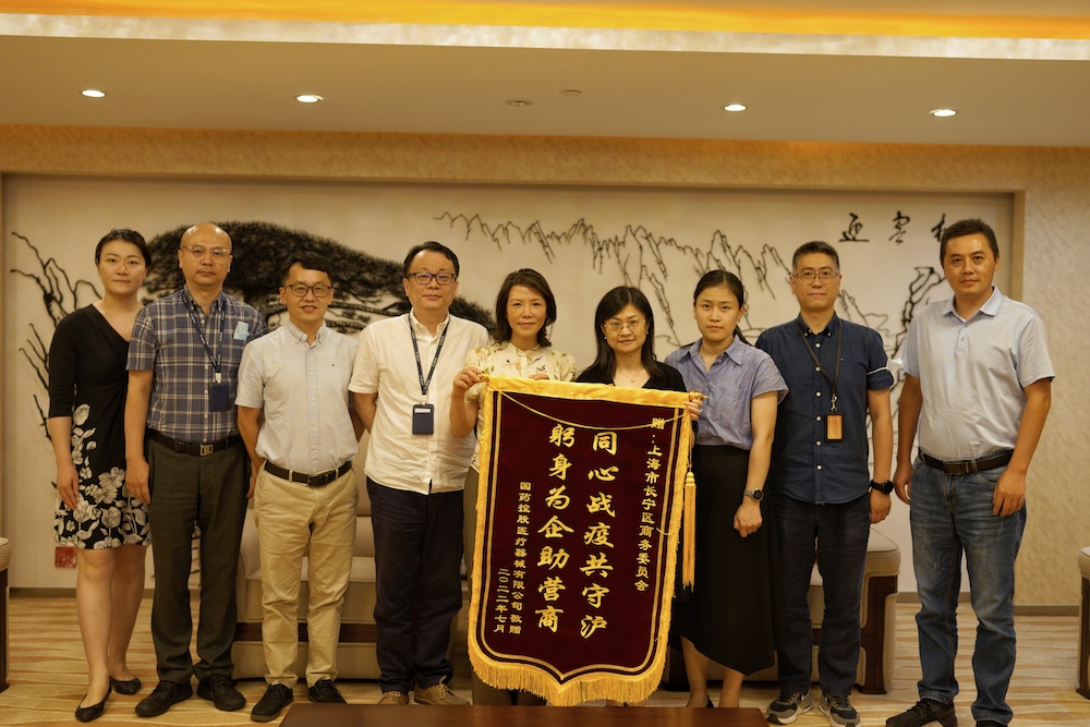胡媚媚总经理对骆乐主任一行来访国控器械表示热烈欢迎,对长宁区政府、区商务委长期以来给予公司的大力支持表示衷心感谢,并送上“同心战疫共守沪,躬身为企助营商”锦旗。胡总表示,国控器械受益于长宁优良的营商环境与精准、高效、规范的行政服务,尤其是本轮上海疫情全域静态管理期间,长宁区商务委给予我司全方位支持与指导,助力国控器械实现平稳健康发展。“十四五”期间,国控器械在践行“三横三纵创百亿”战略发展规划的过程中,将积极助力长宁生命健康产业链布局,与长宁共赢发展、共创未来、共筑梦想。