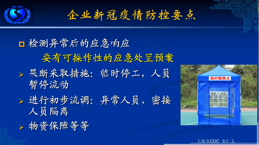 朱教授强调,复工复产企业要切实抓好个人防护和消毒两个“重中之重”,并提前制定具有可操作性的检测异常应急处置预案。