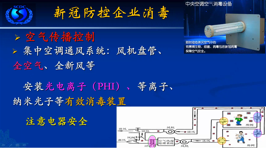 在新冠防控企业消毒的过程中,切实做好物品的消毒,企业应根据科学指引正确选用消毒剂做好快递、包裹外包装消毒,重点关注食品、蔬菜等重点厨房人员的个人防护与蔬果的浸泡消毒。与此同时,要重视空气传播控制,持续开窗通风并辅以机械通风,重点关注集中空调通风系统,重点区域应安装光电离子、等离子、纳米光子等有效消毒装置,避免密闭空间的交叉感染。