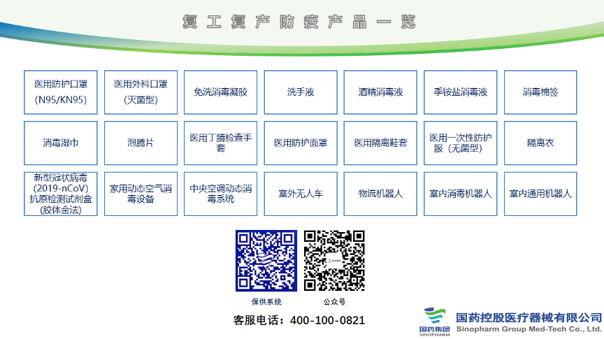 复工复产在即,国药控股医疗器械有限公司将协助各大企事业单位,根据《上海市工业企业复工复产疫情防控指引》(第二版)有关要求,做到核心关键岗位和环节的“人、物、环境同防”,助力上海企业复工复产,国控器械与您同在!