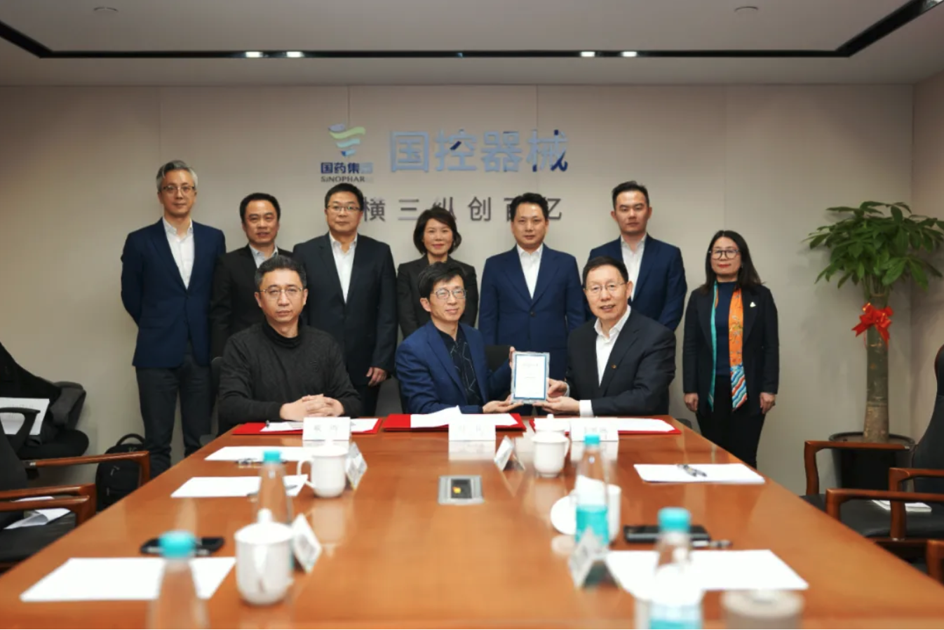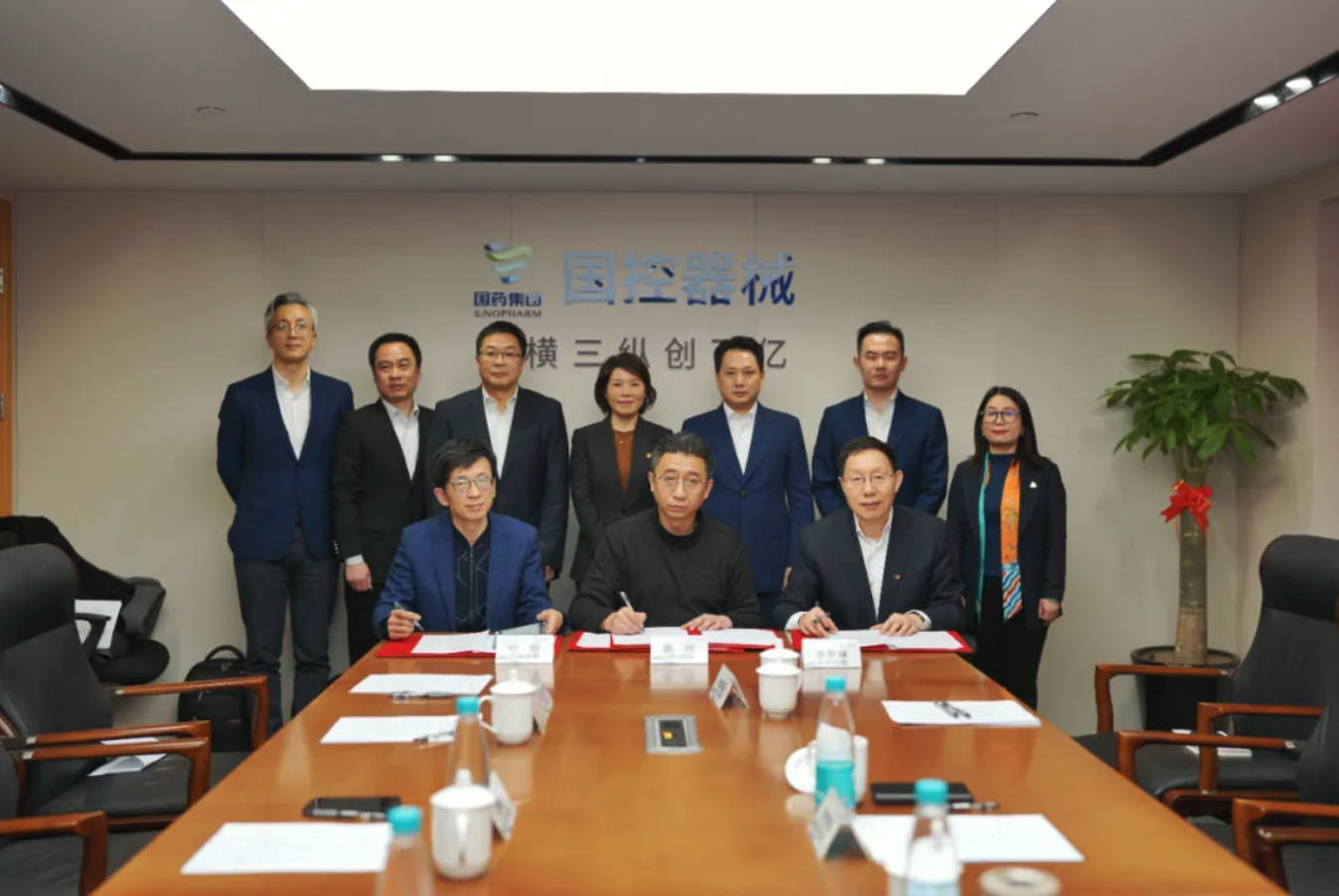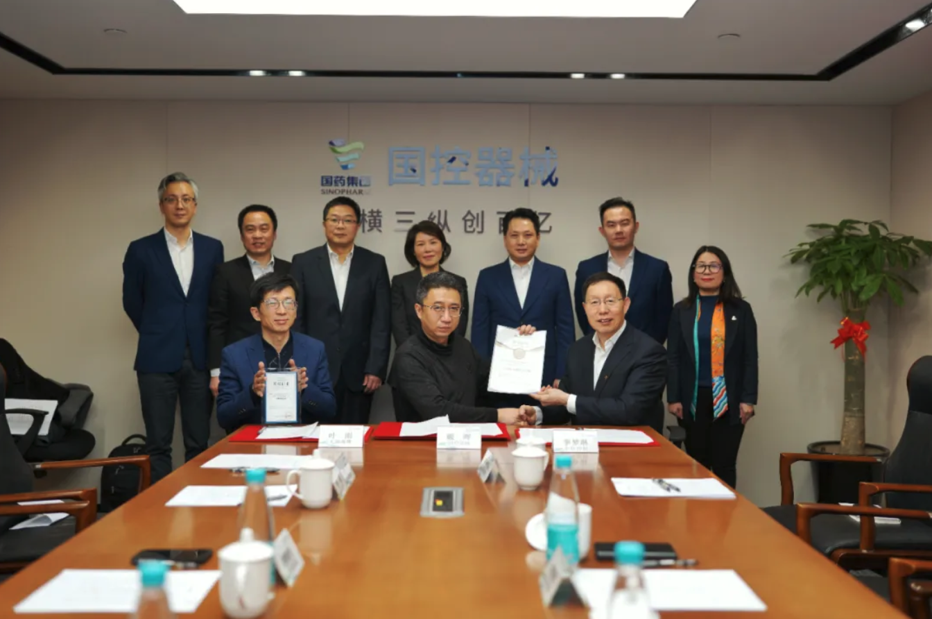 2022年2月10日,国药控股医疗器械有限公司(简称“国控器械”)与无锡海鹰医疗科技股份有限公司(简称“海鹰医科”)、中环控股集团有限公司(简称“中环控股”)及其附属公司上海云尔愈医疗器械有限公司(简称“云尔愈”),在上海国药大厦举行签约仪式暨业务沟通会。海鹰医科董事长虞敏浩、总经理叶刚、中环控股集团董事长余竹云、执行董事李梦琳、云尔愈董事长葛巧云携管理团队出席。国控器械副总经理(主持工作)胡媚媚、副总经理戴晖及相关部门负责人出席会议。