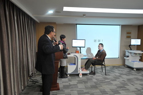 培训由市场部陆毅总监主持。随后由英国达盛生物医药有限公司总经理杨忠宁先生及其团队同事以PPT的形式分别就公司概况、主打产品(包括无创糖尿病及并发症早起检测系统、全自动动脉硬化检测系统、精神压力及心脏血管检测仪和鼻炎治疗仪)、产品特征、市场优势等方面作了详细的介绍。同时,英国达盛公司将设备带到了培训现场,邀请与会人员共同体验,使大家在理性认识的前提下,更多了一份感性认识。此次培训理论结合实际,取得了良好的效果。