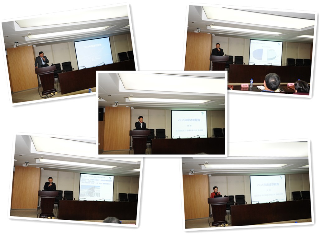 公司班子成员围绕2015年重点工作完成情况、廉洁从业情况、存在的不足之处及2016年工作思路等四个方面分别作了述职报告。公司全体参会人员对领导班子成员进行360度、无记名民主评议。会上国控人力资源部还宣读了关于公司领导干部的任免决定。
